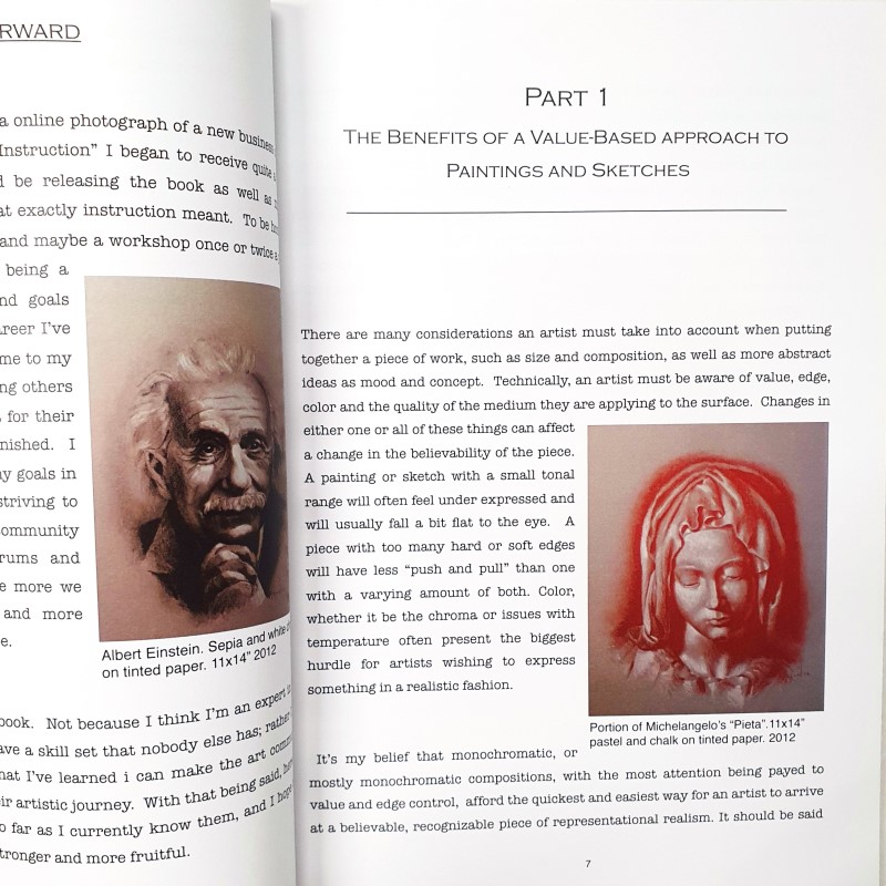 - Een boek met 120 pagina’s dat in detail zijn benadering van monochromatisch en ‘value based’ werk in verschillende materialen laat zienMet 6 volledige tutorials, diverse voortgangs-tutorials en meer dan 90 schilderijen en kunstwerken.