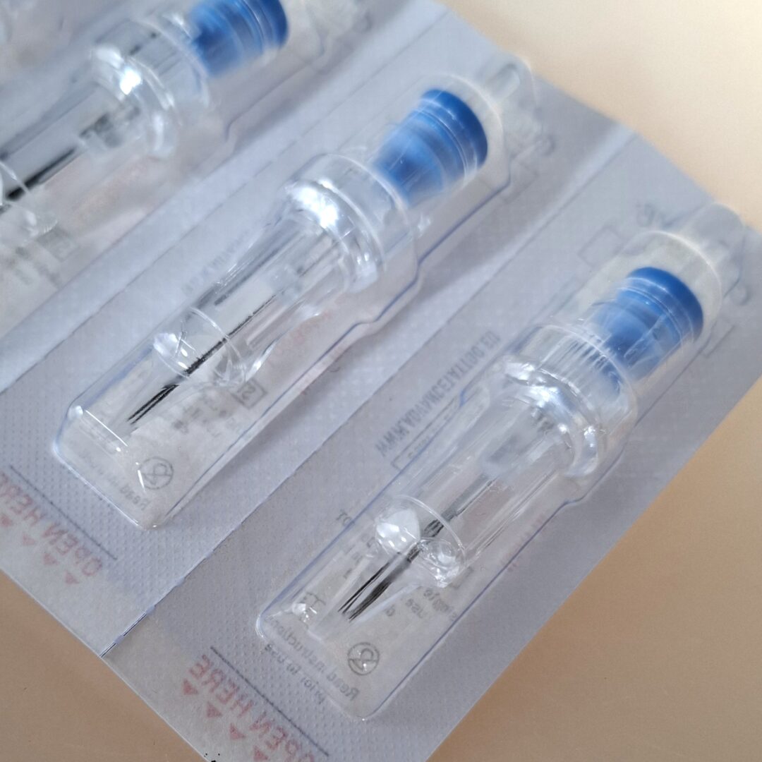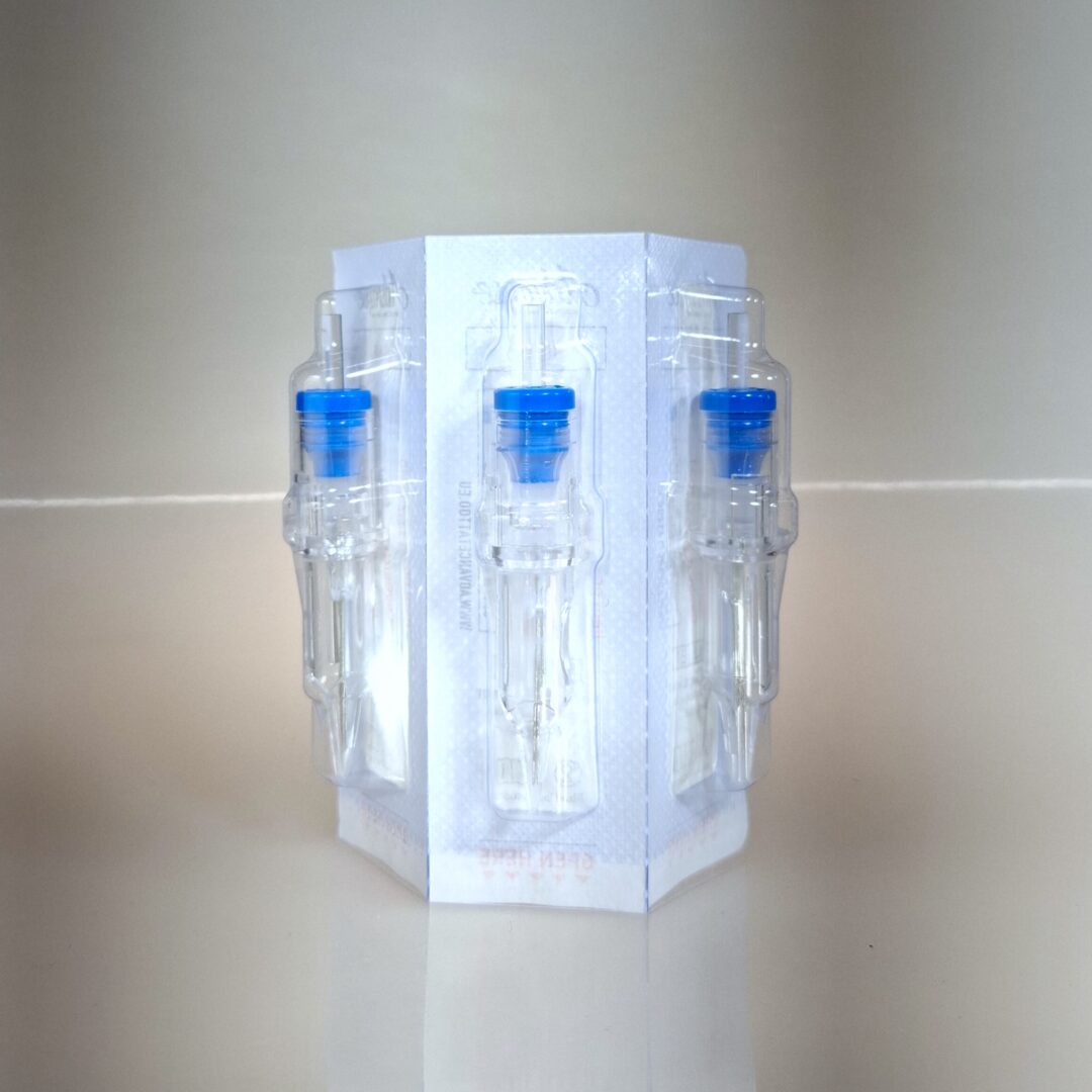 - Packed individually, sterile, long tapered, clear tip and with safety membrane