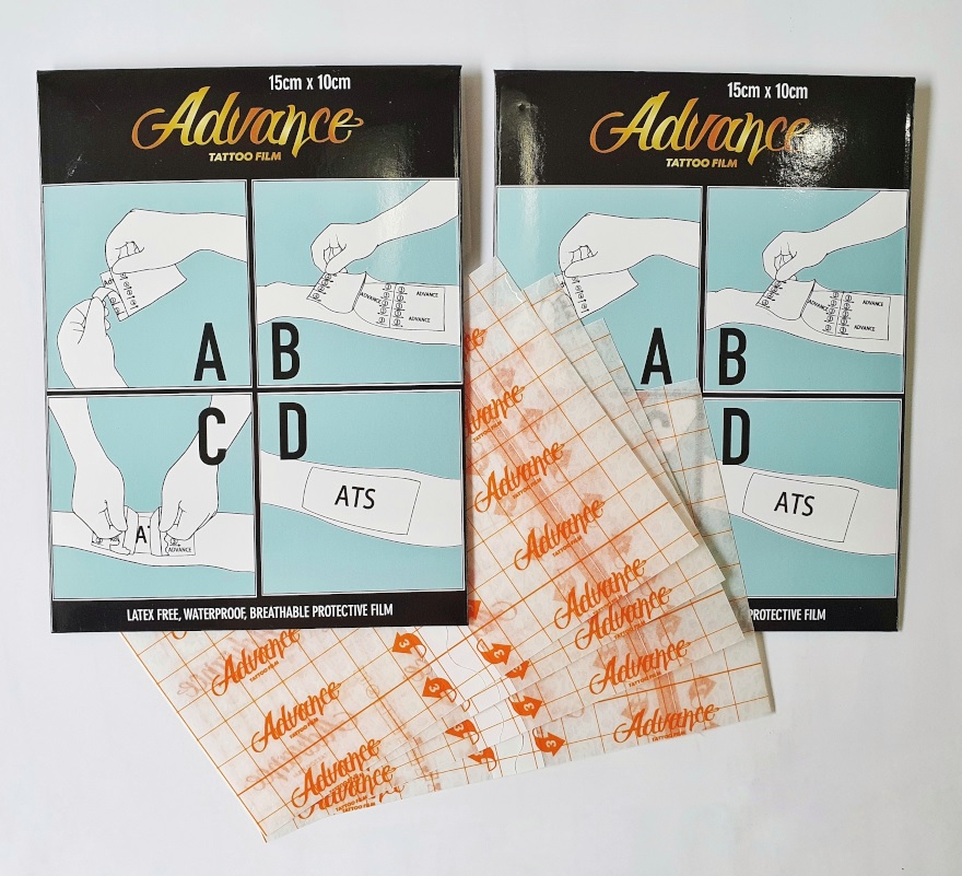 - Advance Tattoo Film, a easy to use, latex free, wateproof, breathable protective film